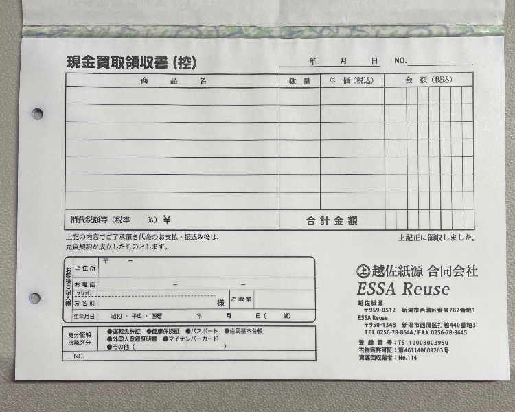 10,000円以上の買取の場合は免許証の提示をお願いいたします。